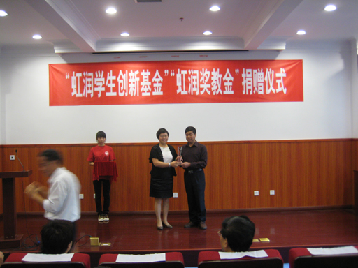 2012年10月27日是上海理工大學慶祝建校106周年的日子。在這喜慶的日子里,公司董事長林善平作為上海理工大學校友應邀參加了上海理工大學106周年校慶。林董在傾情資助家鄉貧困學生的同時,對曾經教育培養過自己的上海理工大學一往情深,決定捐款50萬元,在母校建立“虹潤學生創新基金”和“虹潤獎教金”,用于鼓勵上理工刻苦學習、勤于鉆研,敢于創新的上理工學生和忠誠黨的教育事業的上理工教師。10月26日下午,“虹潤學生創新基金”和“虹潤獎教金”捐贈儀式在上理工“格致堂”舉行。會上林董向校方代表遞交了50萬元支票(樣張)。林董的善舉感動了上海理工大學光電學院師生,光電學院潘淑平處長向林董頒發了捐贈證書。