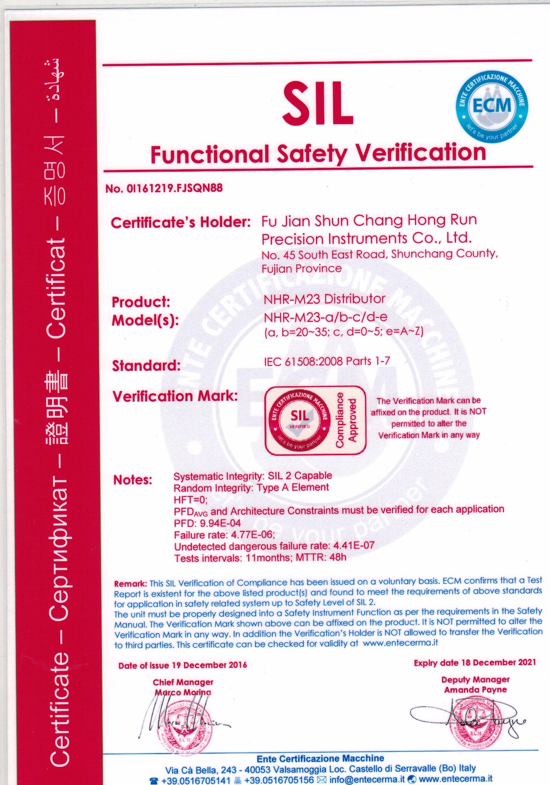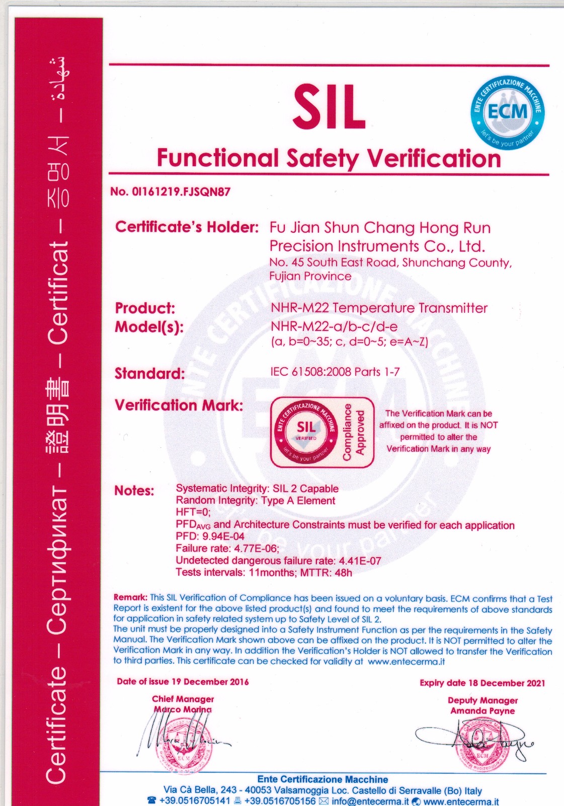 近日,虹潤(rùn)智能儀表系列產(chǎn)品再傳喜訊,虹潤(rùn)兩款智能儀表產(chǎn)品NHR-M22溫度變送器、NHR-M23配電器獲得了國(guó)際SIL2功能安全認(rèn)證證書(shū)。這標(biāo)志著虹潤(rùn)儀表產(chǎn)品的安全性達(dá)到了國(guó)際標(biāo)準(zhǔn)。也為虹潤(rùn)產(chǎn)品實(shí)現(xiàn)走向世界的美好愿景再一次打下了堅(jiān)實(shí)的硬件基礎(chǔ)。