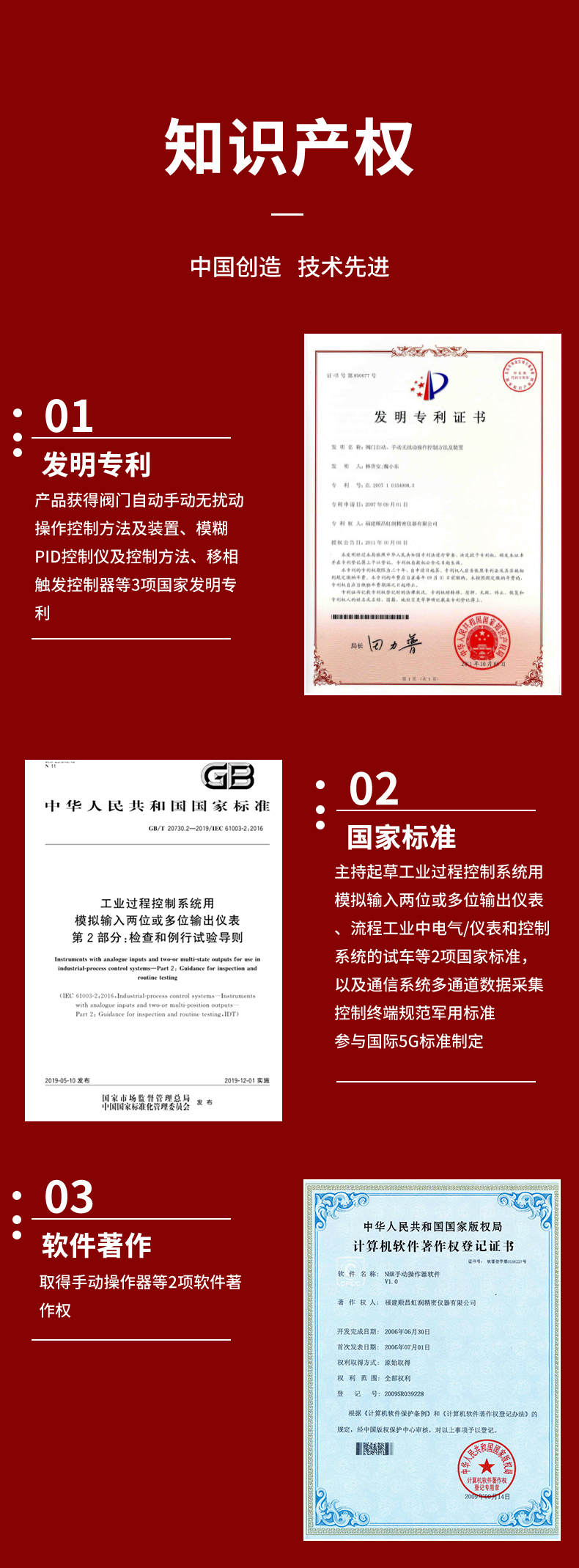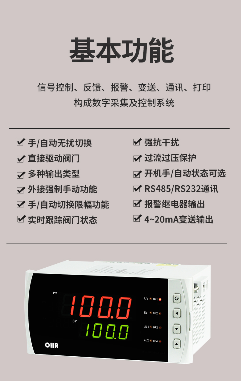虹潤公司是專業生產智能手操器的國家專精特新“小巨人”企業,生產的手動操作器,具有手自動無擾切換,直接調節閥門,多種輸出類型,外接強制手動功能,高抗干擾等特點。產品獲得閥門自動手動無擾動操作控制方法及裝置、模糊PID控制儀及控制方法、移相觸發控制器等3項國家標準,主持起草工業過程控制系統用模擬輸入兩位或多位輸出儀表、流程工業中電氣/儀表和控制系統的試車等2項國家標準,以及通信系統多通道數據采集控制終端規范軍用標準,參與國際5G標準制定,取得手動操作器等3項相關軟件著作權。產品廣泛應用于電力、石化、冶金、化工、造紙、食品、輕工、制藥、熱處理、水處理、機械配套等各種工業現場。