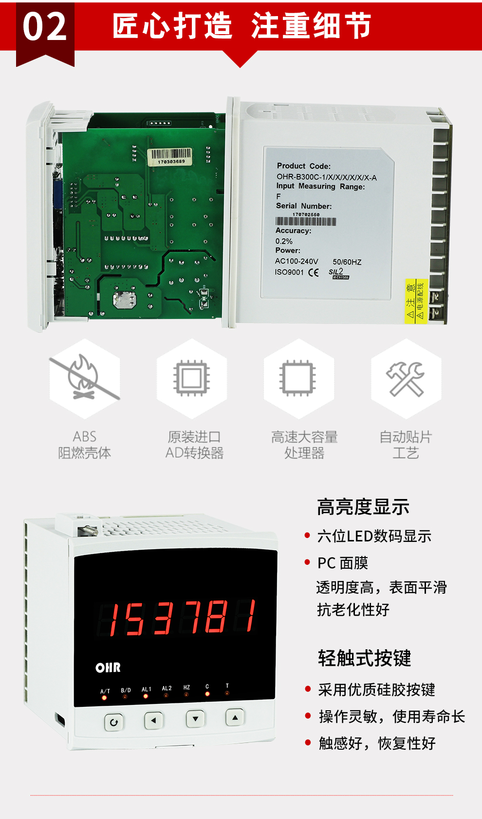 OHR-B300系列計數器采用全自動貼片封裝工藝,具有很強的抗干擾能力,并具有多種輸出功能和控制功能,多種計數模式,廣泛運用于電力、石化、冶金、輕工、制藥、航空等諸多領域。