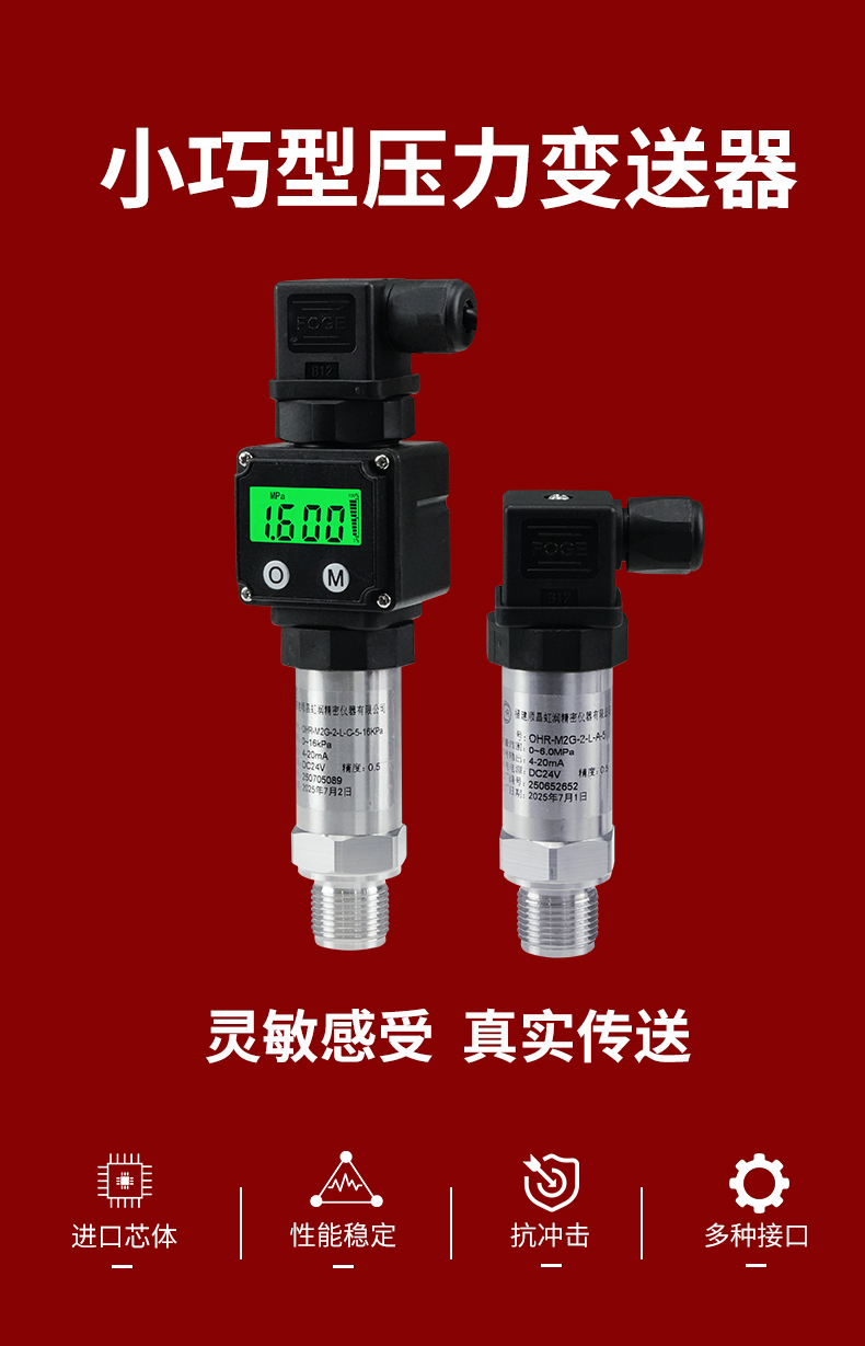 虹潤公司是專業生產壓力變送器的國家專精特新“小巨人”企業,生產的小巧型壓力變送器,具有采用進口芯體,量程范圍寬,抗沖擊抗震動,多種螺紋接口,性能穩定等特點。產品獲得一種數字顯示低功耗壓力表、一種信號發生器裝置等2項國家發明專利,主持起草工業過程控制系統用模擬輸入兩位或多位輸出儀表、工業過程測量和控制系統用壓力/差壓變送器等2項國家標準,通信系統多通道數據采集控制終端規范軍用標準,以及現場設備集成等5項智能制造國家標準,參與國際5G標準制定,取得數顯壓力表等2項相關軟件著作權。產品廣泛應用于化工、食品、制藥、電力、設備配套、供暖、水處理、樓宇等行業,需精準測量流體壓力的現場。