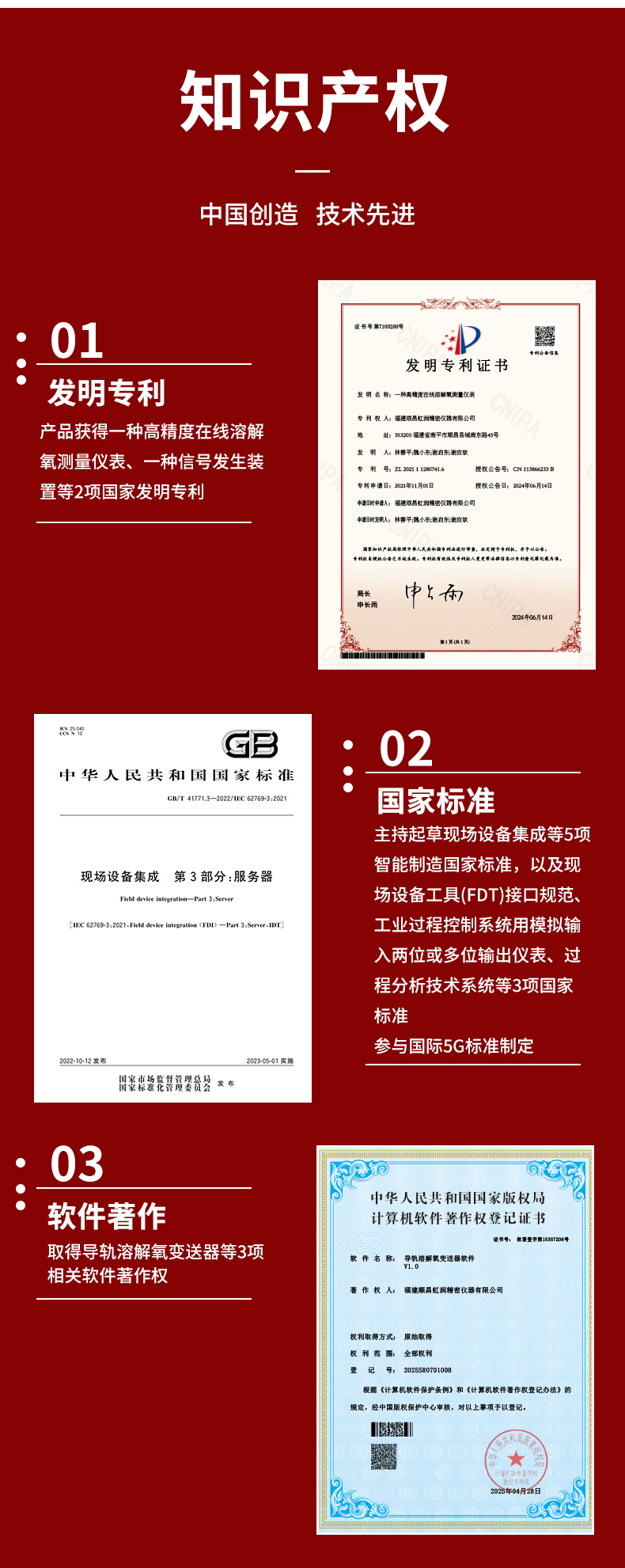 虹潤公司是專業生產水質分析儀的國家專精特新“小巨人”企業。生產的導軌式溶解氧變送器,具有測量穩定不跳字,液晶按鍵操控,變送輸出精準,寬范圍電源供電,RS485或HART通訊等特點。產品獲得一種高精度在線溶解氧測量儀表、智能化控制器、一種信號發生裝置等3項國家發明專利;主持起草現場設備集成等5項智能制造國家標準,以及現場設備工具(FDT)接口規范、工業過程控制系統用模擬輸入兩位或多位輸出儀表、過程分析技術系統等3項國家標準;參與國際5G標準制定,取得導軌溶解氧變送器等3項相關軟件著作權。產品廣泛應用于實驗室、水處理、環境監測、制藥、食品、農業、工業流程控制等諸多領域。