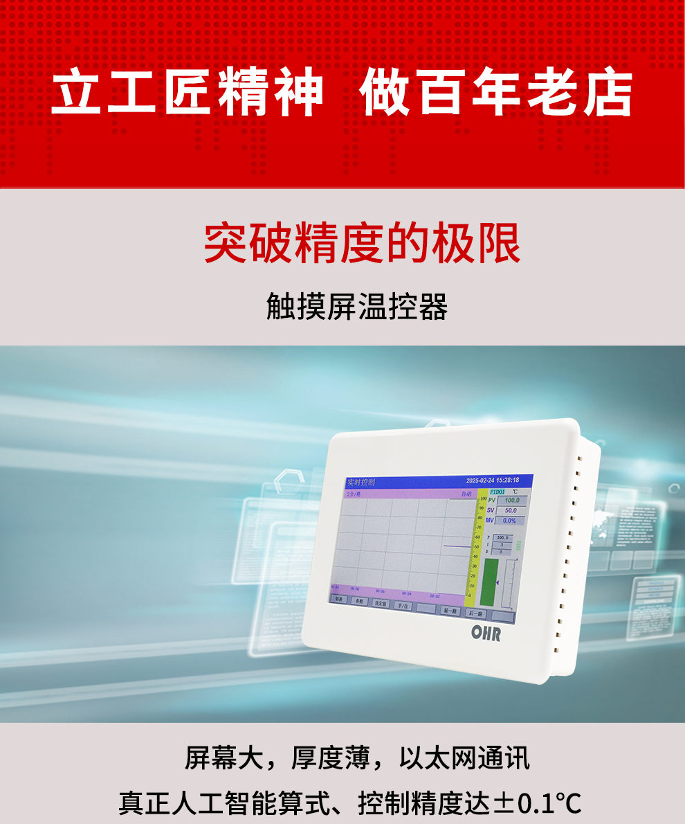 虹潤公司是專業(yè)生產(chǎn)無紙記錄儀的國家專精特新“小巨人”企業(yè)。生產(chǎn)的觸摸屏溫控器,具有觸摸大屏顯示,真正人工智能算式,無需人工整定參數(shù),控制精度達士0.1°C, RS485/以太網(wǎng)通訊,5/7/9英寸可選等特點。產(chǎn)品獲得智能化控制器、人工智能調(diào)節(jié)器及調(diào)節(jié)方法、模糊PID控制儀及控制方法、平板無紙記錄儀、巡回檢測顯示方法及裝置等5項國家發(fā)明專利,主持起草物聯(lián)網(wǎng)智能記錄儀表通用技術條件、物聯(lián)網(wǎng)智能溫度儀表通用技術條件、工業(yè)過程測量和控制系統(tǒng)用智能調(diào)節(jié)器等3項國家標準,通信系統(tǒng)多通道數(shù)據(jù)采集控制終端規(guī)范軍用標準,以及空間數(shù)據(jù)與信息數(shù)據(jù)傳輸系統(tǒng)等2項航天標準,參與國際5G標準制定,取得觸摸屏彩色調(diào)節(jié)無紙記錄儀等3項相關軟件著作權。產(chǎn)品廣泛應用于電力、石化、冶金、化工、食品、制藥、熱處理、水處理、機械配套等諸多領域。